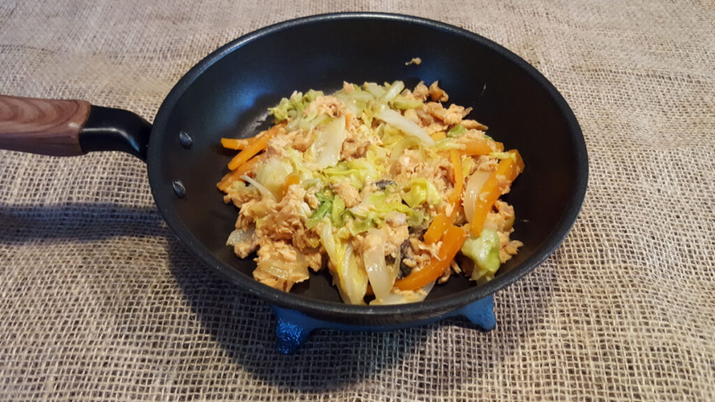 これは単純だけどバクバク食べちゃう!シーチキンをノンオイルにしなければもうジューシーでハイカロリーだからハンバーガー級のエネルギーだね!‥太っちゃう!