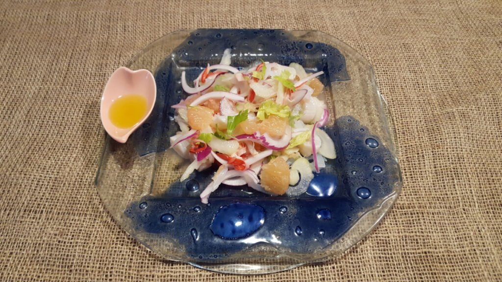 これはまず映え的にいいね!酢の物嫌いなんだけど、グレープフルーツでマリネするってマジで美味い!