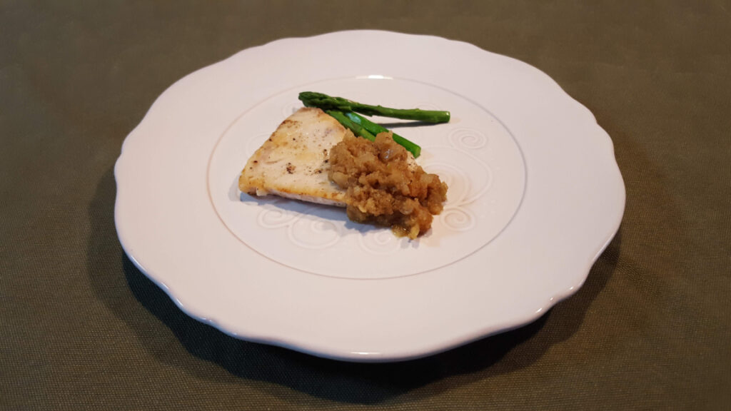 エレファントホンマグロって言ったらワンピの世界の定番食材なんだけど、現実で食べるとただのカジキマグロだからね!でもソースが美味しい!