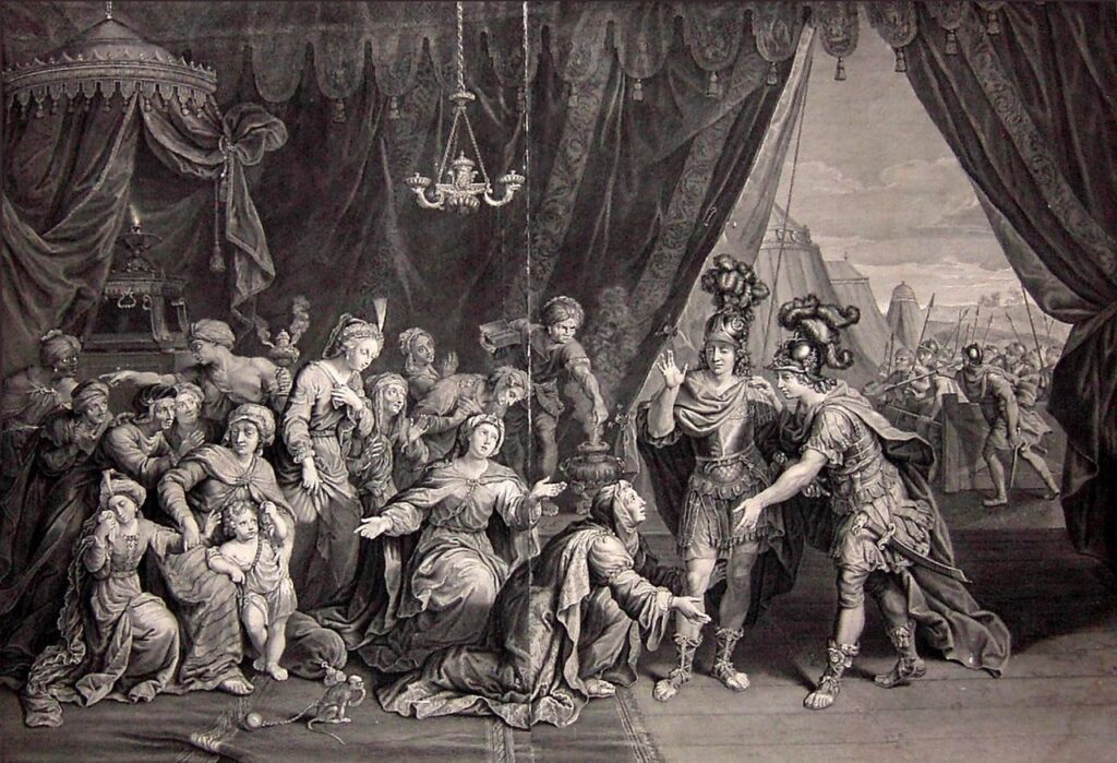 『アレキサンダー大王』という呼び方もされる彼は、この後にヨーロッパを支配する『カエサル』の前にヨーロッパを支配した、大帝国の支配者である。アケメネス朝ペルシャの最後の王、ダレイオス三世は、彼の遠征運とのイッソス、ガウガメラの戦いで敗れ、逃亡中に暗殺された。そして家族はアレクサンドロスに捕らえられた。