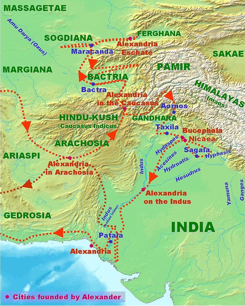 その後アレクサンドロスは東方に遠征するのだが、その時の逸話がいくつか存在している。例えば、単純に、『兵士が疲れ果てた』というもの。そのせいで、インダス川流域まで侵攻したところで快進撃が止まる。だが、その時の兵士は老兵で、彼らの拒否がなければどこまででも侵攻したと言われている。