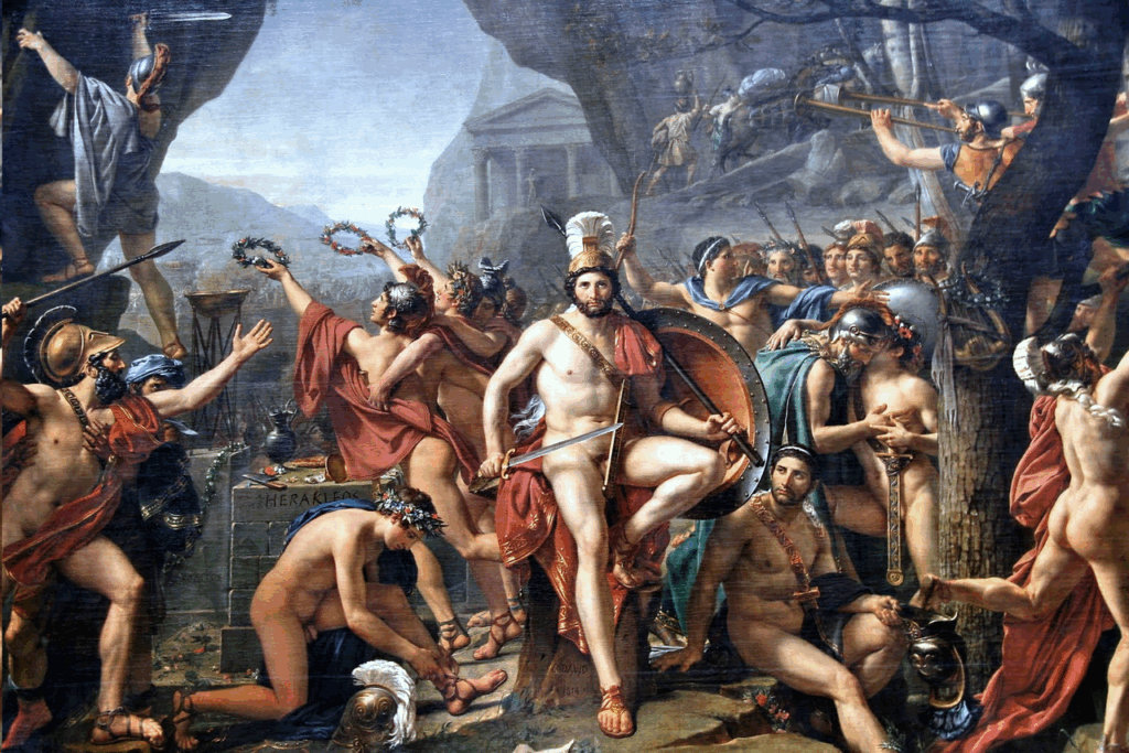 テルモピュライの戦いは、紀元前480年。マラトンの戦いの10年後だ。この戦いについては、映画『300』の舞台となったことでも有名だ。ギリシャのスパルタはカルネイア祭によって全軍を出仕できず、レオニダス王率いる先遣隊300のみを派遣した。つまり、レオニダス率いるスパルタ軍300人の精鋭たちが、100万人以上のペルシャ軍を相手に、戦いを挑む雄姿を描いた映画だ。不気味で巨大なペルシャの王、クセルクセスも見ることができる。